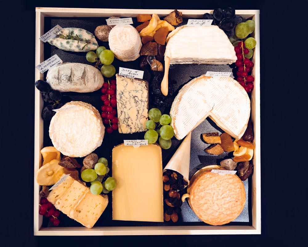 To order, we make your cheese platters on our wooden trays (food grade French poplar) accompanied by dried fruits, grapes, fresh seasonal fruits, etc.